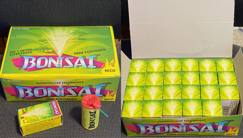 1 Karton mit 23 Stück Silberföntänen BONSAI Fontänen von NICO Feuerwerk