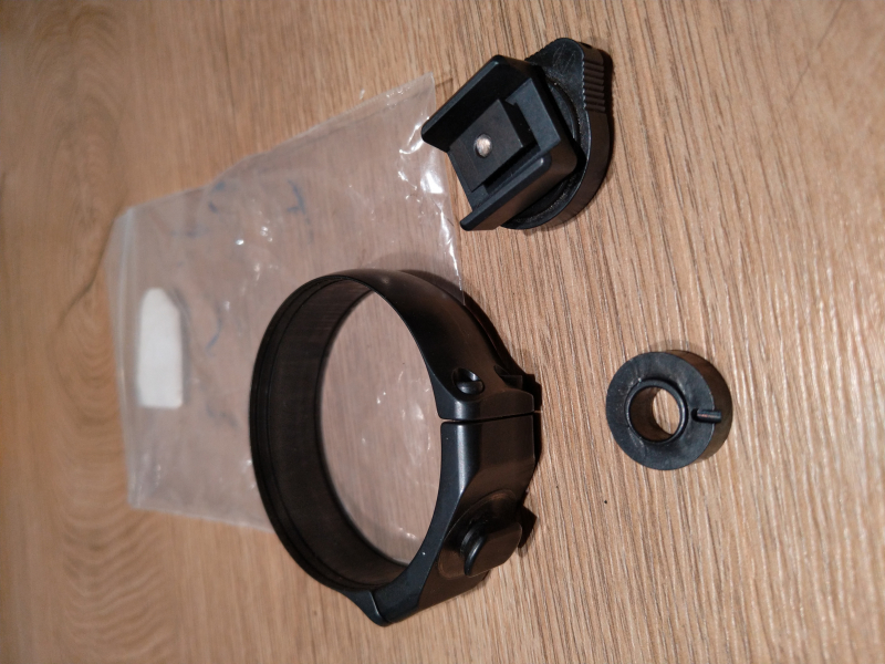 Oberteile einer Schwenkmontage, vorderer Ring Durchmesser 62mm, hinten für Innenschiene Zeiss. Kralle hinten für 14mm Prisma. Ein Abstandsring ist dabei, allerdings weiß ich nicht ob er dazu passt. Privatverkauf keine Garantie oder Rücknahme.