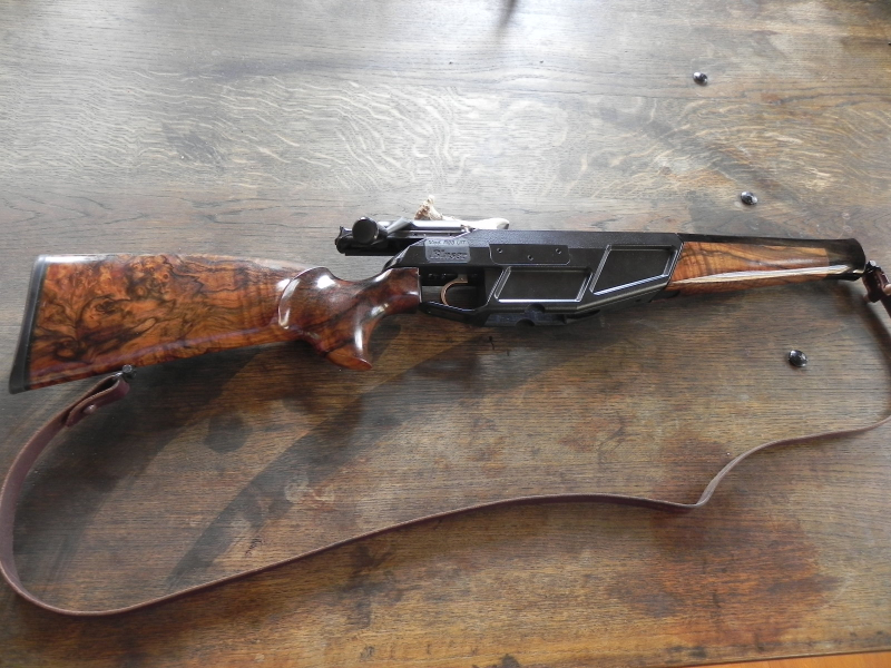 Zum Verkauf steh eine gebrauchte, nahezu neuwertige Komplettierung einer Blaser R93 UIT in jagdlicher Version. Dazu wurde das System der R93 UIT mit einem handgeschäfteten Schaftholz der allerhöchsten Güte versehen siehe Bilder. Der Vorteil besteht darin, dass das System über einen Magazinschacht verfügt, in welchem man Magazine mit 10 Schuss einsetzen kann. Das System ist ausgelegt auf das Kaliber 308 Winchester. Die Komplettierung wird komplett geliefert, d.h. inkl. System, Verschluss, 10 Schuss Magazin, so dass nur noch ein Standardlauf im Kaliber 308 Winchester eingelegt werden muss und man hat eine tolle Drückjagdwaffe. Der Lauf muss den Standarddurchmesser haben, dickere Läufe passen auf Grund des Vorderschaftes nicht, diesen müsste man dann gegebenenfalls aufweiten lassen. Schaftlänge 36cm.