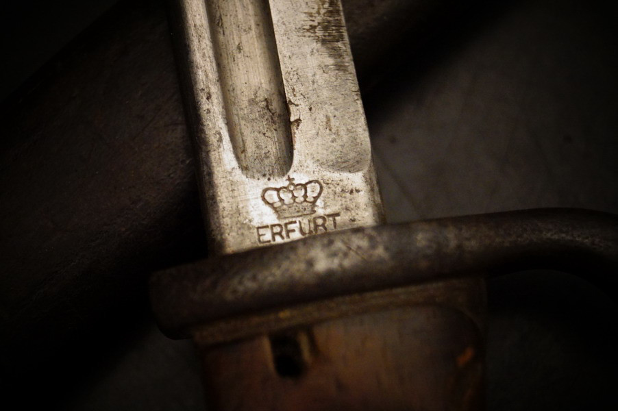 Kaiserliches Bajonett, schlanke Klinge, Rgt., Abnahmen, ERFURT, WK1, Fundzustand