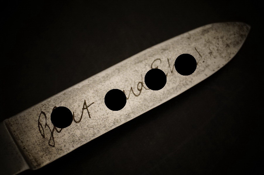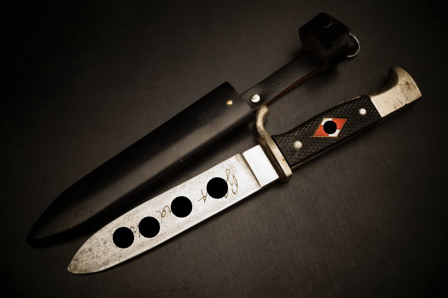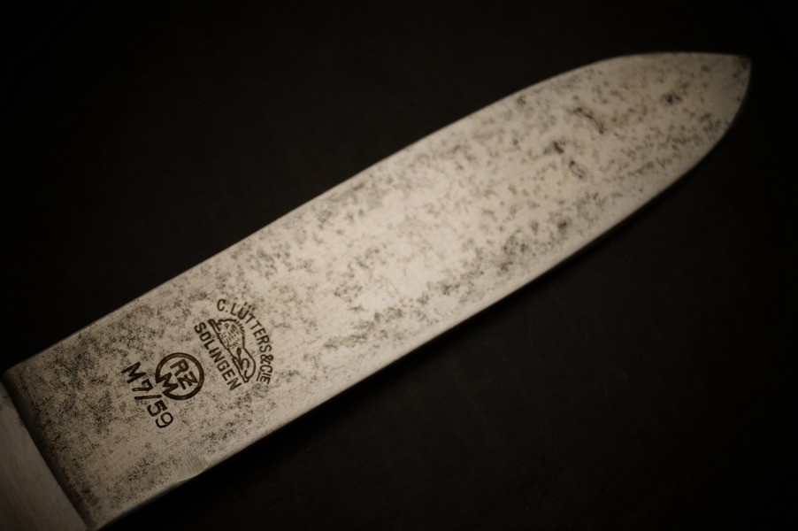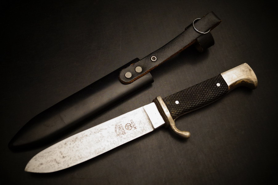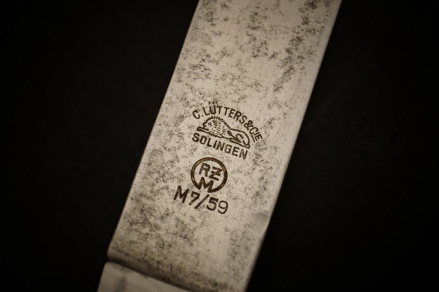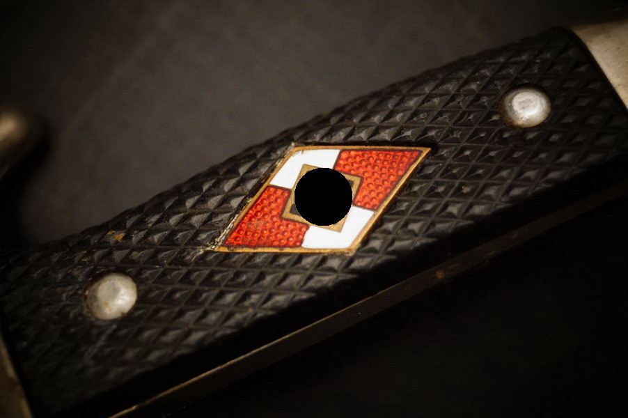 Fundzustand. Stahlklinge und Stahlscheide. Raute mit Glasemaille.