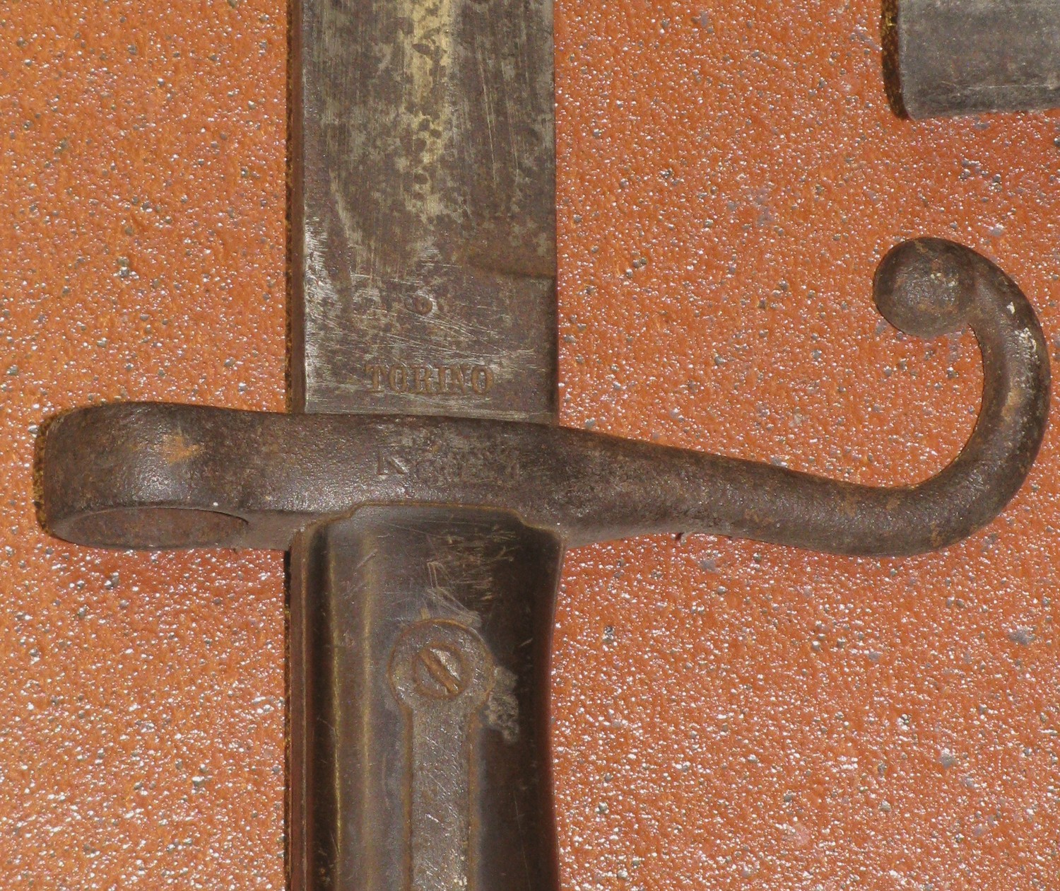 Seltenes Bajonett Italien, ein Bajonett Vetterli 1870 gestempelt 'Torino' mit Koppelschuh