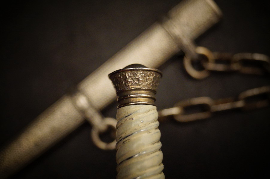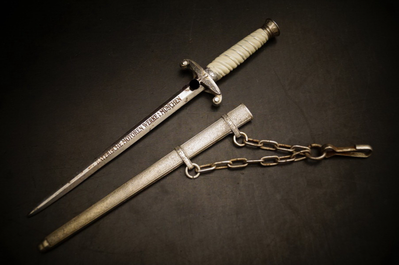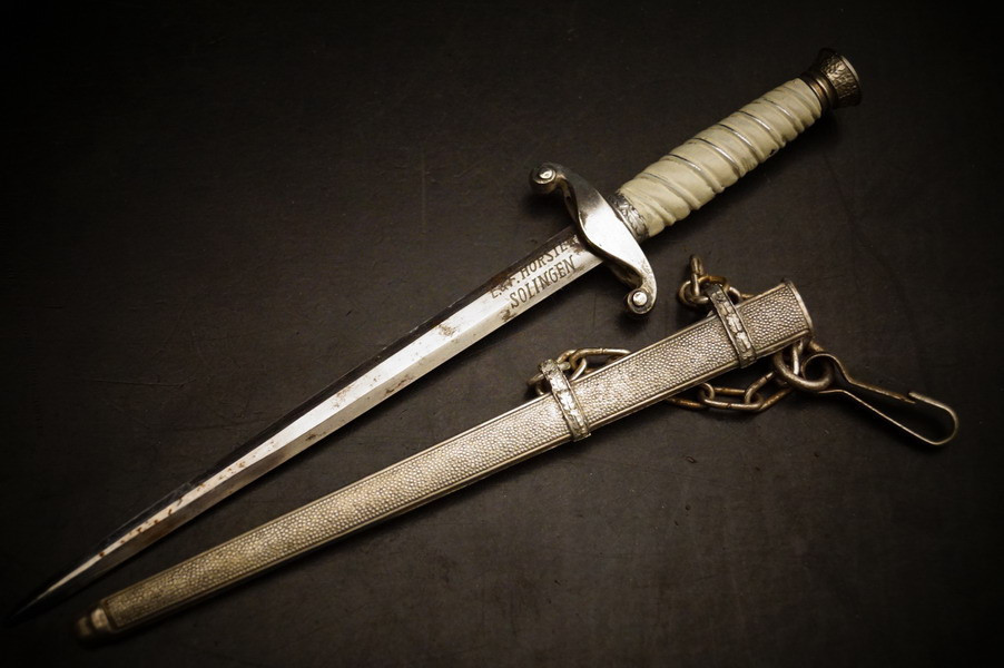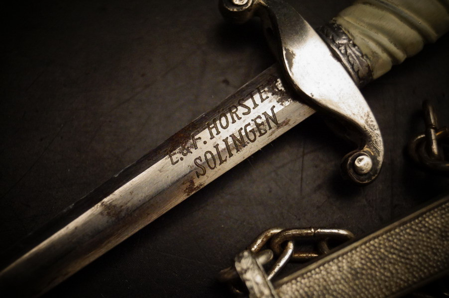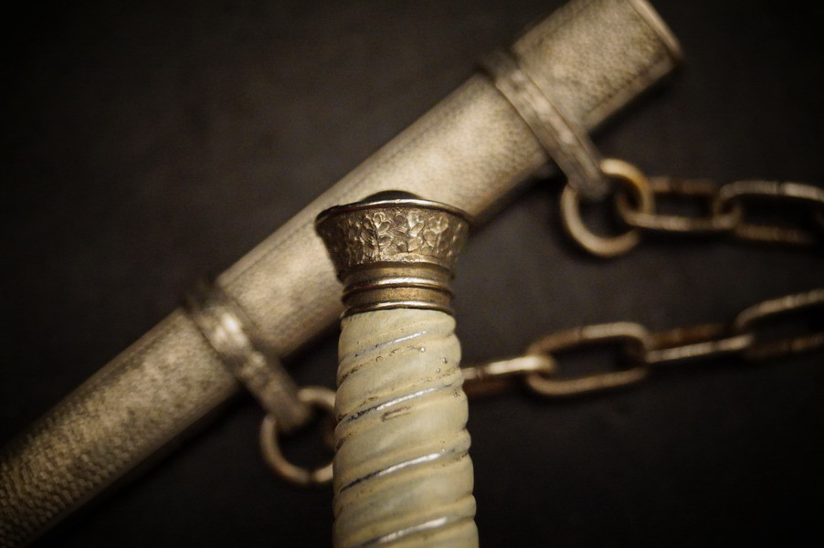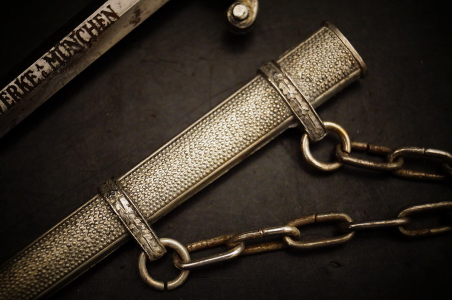 Fundzustand. Stahlklinge, vernickelt und mit Stahlscheide u. Koppelschuh.
