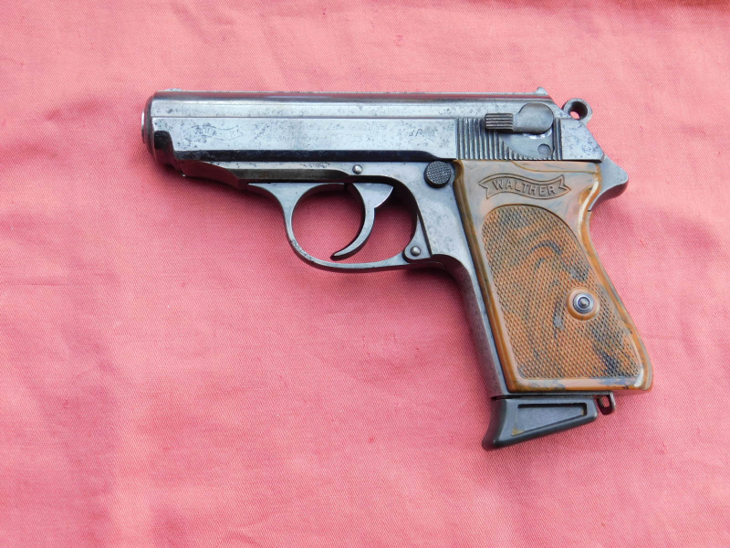 Walther PPK Zella Mehlis Kal. 7,65 mm Br. Lauf innen leicht matt, Profil sehr deutlich. Waffe wurde überarbeitet und neu brüniert. Beschuss Krone N heute noch gültig! Ein Magazin aus Ulmer Fertigung dabei.