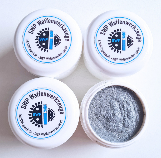 Sie kaufen hier jeweils eine Dose mit 50ml unserer Lauf und Patronenlager Reinigungspaste. Bei dieser Paste handelt es sich um eine abrasive Reinigungspaste die es ermöglicht stärkste Verbrennungsrückstände und Verschmutzungen im Lauf und dem Patronenlager von Schusswaffen zu lösen und zu reinigen. Unsere Laufreinigungspaste hat als Grundlage unseren Chemischen Patronenlager und Laufreiniger. Und wird durch verschiedene Abrasive Reinigungszusätze vervollständigt. Durch die hochreinen und ultrafeinen Körnungen wird sogut wie kein Material vom Lauf entfernt. Auf Anfrage ist auch ein Internationaler Versand möglich.