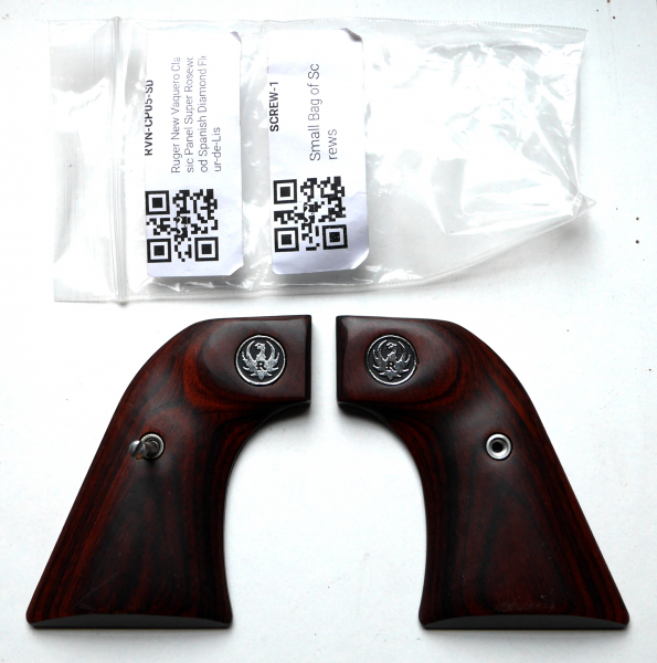 Originale Rosenholzgriffschalen für Ruger New Vaquero samt zwei Schrauben (brüniert & silberfarben).