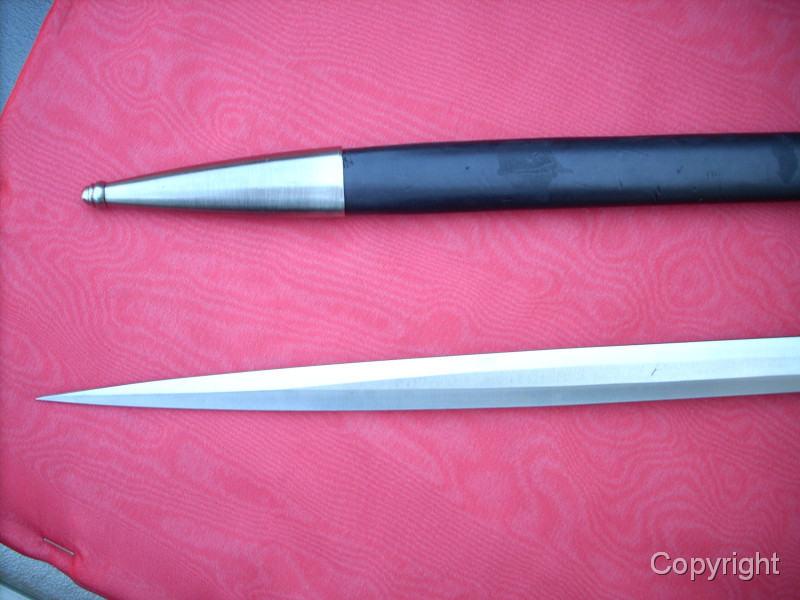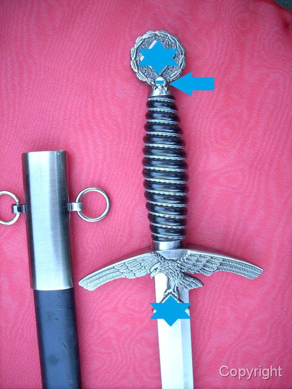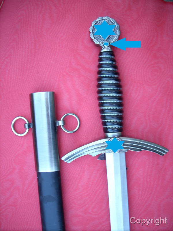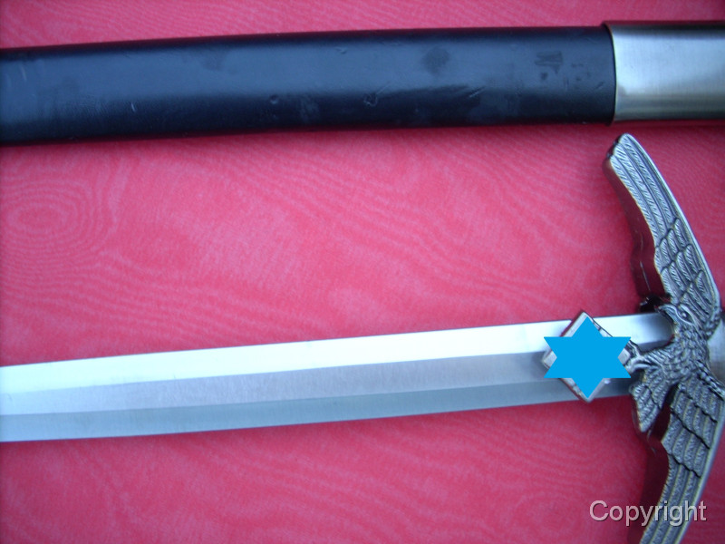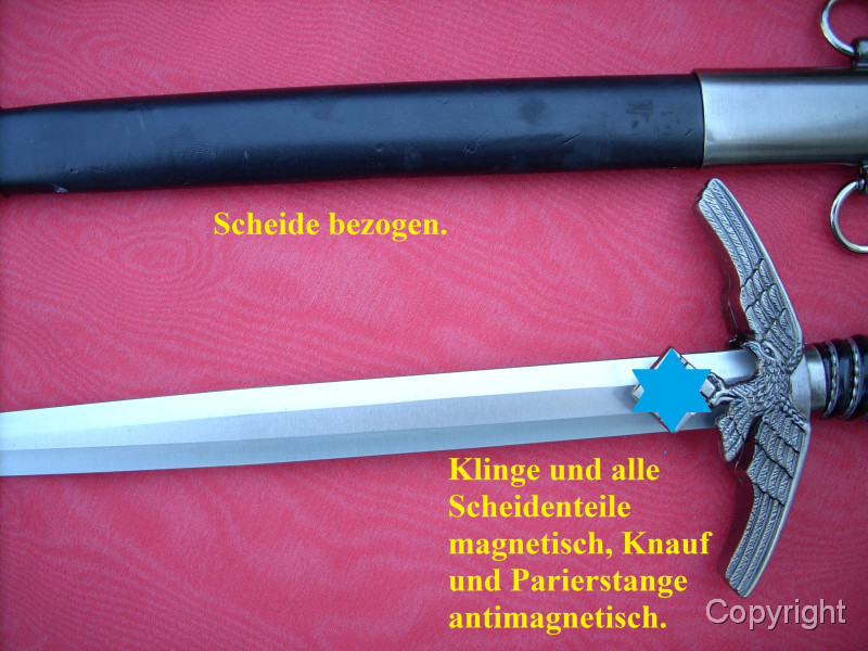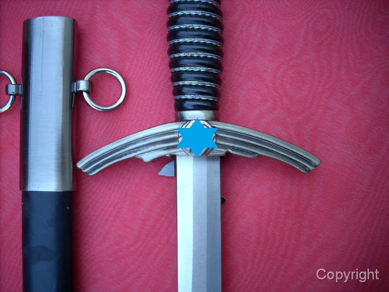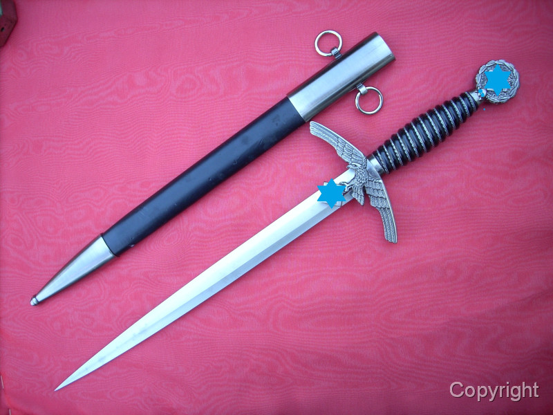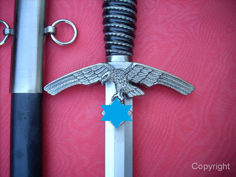 Angeboten wird ein sehr dekorativer Luftwaffendolch / kleines Luftwaffenschwert. Die Parierstange erinnert ein wenig an Görings Hochzeitsschwert, für das eine Ähnliche angefertigt wurde (das originale Hochzeitsschwert liegt als Kriegsbeute in der Militärakademie West Point, USA). Näheres zum hier angebotenen Stück entnehmen Sie bitte den zusätzlichen Infos auf den Fotos. Gesamtzustand siehe Fotos, die, wie immer, Bestandteil der Artikelbeschreibung sind. Keine Garantie und keine Rücknahme.