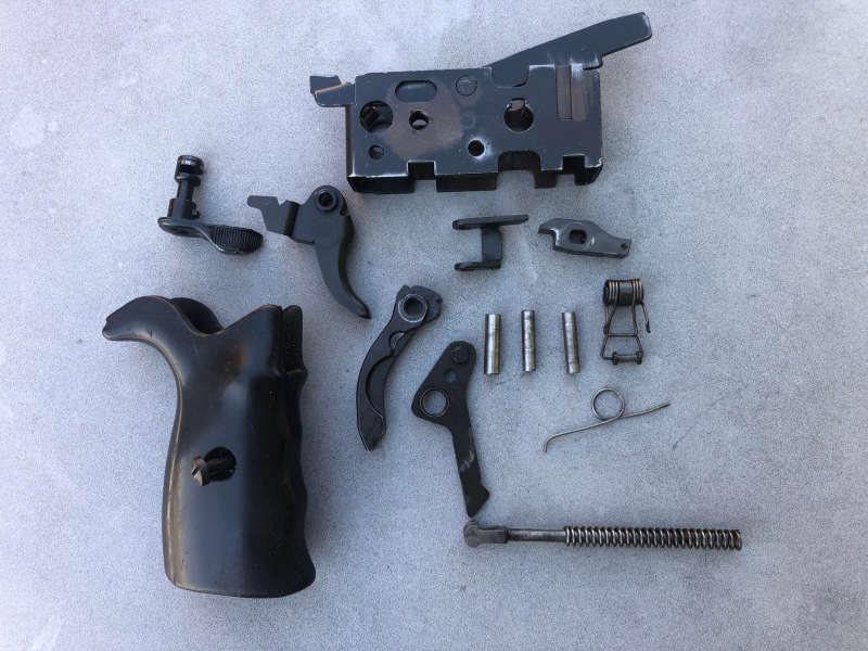 H&K HK G3 Abzugseinheit, zerlegt (komplett) mit Griffschale, schwarz. Wie auf dem Foto!