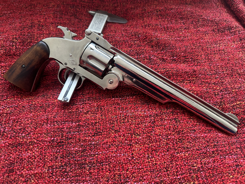 Aus Westernsammlung ,die leider aufgelöst wird !Viel schönes,seltenes dabei aus den guten,alten Zeiten,bei Interesse einfach anfragen...Hier ein tolles,mächtiges Exemplar als Deko&Modell-Ganzmetall,voll beweglich-spannbar-abschlagbar!Schwere Ausführung,die so leider seit Jahren nicht mehr gebaut wird!Länge 36 cm,Gewicht Ca.1 kg.Echte Holzgriffe.Die Bilder als Beschreibung sind zu beachten.Frei ab 18.Privatversteigerung ab 1€ ohne Rücknahme.20€ Versandkosten innerhalb der EU-Länder.