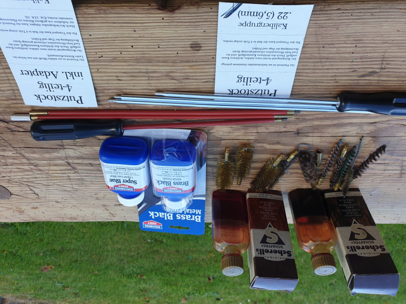 Konvolut zum ausbessern und anderes ,siehe . Birchwood Casey sind Beide voll , Scherell 's Schaftol Beide halb voll.