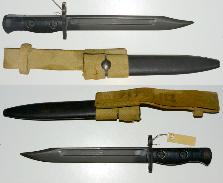Englisches Kampfmesserbajonett L1A3 für das FAL Gewehr, komplett mit Webbelt-Koppelschuh, sehr guter Zustand, Klingenlänge 19,7cm