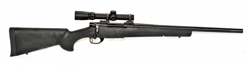 Hervorragend ausbalancierte Büchse - ohne erkennbare Gebrauchsspuren. Kräftiger Verschluss mit Ladeanzeige. Seitliche Schiebesicherung. Fein eingestellter Abzug. Massiver 51cm langer, spiegelblanker, Bull Barrel-Lauf mit 21mm Mündungsdurchmesser für beste Treffergbnisse. Kastenmagazin für 5 Patronen mit Klappdeckel. Kunststoffschaft mit ventilierte HOGUE Schaftkappe. Sehr gutes, variables 1.5-5x24 LEUPOLD-Drückjagdglas mit Klemmmontage.