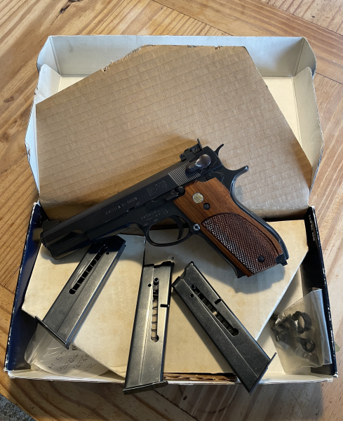 Zum Verkauf im Auftrag kommt eine gebrauchte dennoch sehr gut gepflegte Smith and Weston Pistole 52-2 im Kaliber 38 Spezial. Die Waffe wird im Originalkarton mit drei Magazinen geliefert. Mit dabei sind einige Ersatzteile, zu denen ich allerdings keine nähere Angabe machen kann. Schöne Seriennummer. Die letzten zwölf Jahre hat die Pistole im Tresor verbracht. Vom Zustand her hat die Waffe beinah einen Sammelcharakter. Ich hoffe, die Bilder geben den Zustand recht gut wieder. Der Verkauf erfolgt nur an Erwerbsberechtigte (z. B. WBK grün mit Voreintrag oder Handelslizenz). Der Verkauf erfolgt von privat, ohne Gewährleistung, Garantie, Umtauschrecht oder Ähnliches. Nachverhandlungen sind ausgeschlossen. Abholung vor Ort ist nach Vereinbarung möglich. Der Versand erfolgt nach Überprüfung der Unterlagen durch die Behörde. Kein Export ins Ausland!