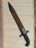 Klinge: Spanischer Stil, inspiriert von der iberischen Armee. Gerade Klinge mit breitem Schnurrbart, quadratischem Rücken innen und gebogener Schneide außen. Breiter Hohlraum bis zur Spitze.
