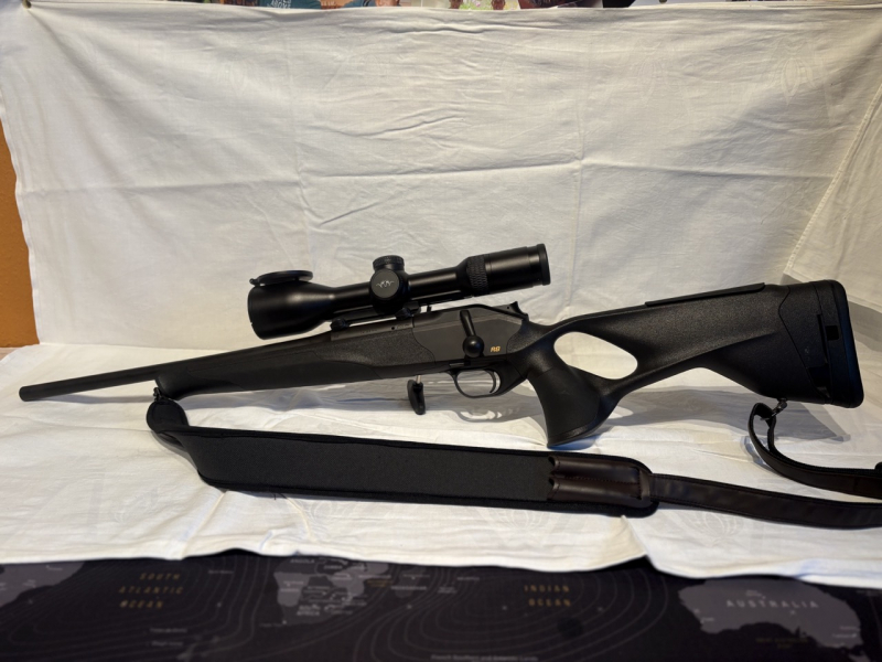 Blaser R8 Ultimate in Kaliber .308 für Linkshänder mit original Blaser Sattelmontage sowie Blaser Zielfernrohr 2,5-15x56 IC Schiene mit B2 QDC+ASV Schnellverstellung sowie Flipcover und Gewehrriemen. Lauflänge 470mm. Gewinde für Schalldämpfer vorhanden, Schaftkappe sowie Schaftrücken verstellbar. Hervorragend für Drückjagden oder als Durchgehwaffe. Schussbelastung unter 100 Schuss.