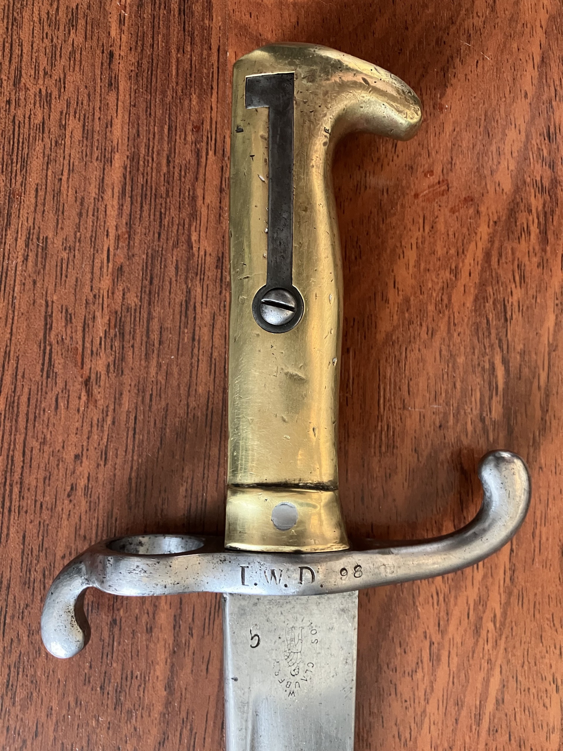 Füsilier Seitengewehr M1860 , Hersteller Clauberg Solingen , Abnahme W68 , Marine truppenstempel nummergleich I.W.D. 98 (I Werft Division), Gesamtlänge mit Scheide 65 cm , Klingenlänge 50,5 cm. Seltenes Seitengewehr zustand sie bilder. Privat verkauf keine garantie oder rücknahme.