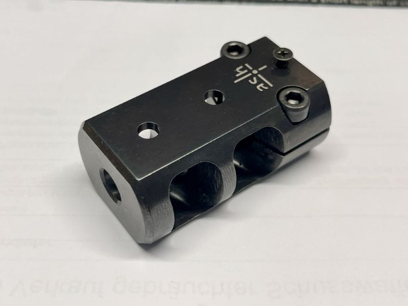 Es ist eine zwei-Kammernbremse bis Kal. .30 und Kaliber darunter mit einer Schraub-Klemm-Verbindung M18x1. Einmal installiert hält sie zuverlässig und nimmt auch den Rückstoß gut weg. Schraube für das Flimmerband ist auch drauf. Länge 60mm und Breite 34,80mm. Da ich einen Laufwechsel durchgeführt habe, passt sie nicht mehr. Abholung in 08525 Plauen möglich, Versand 6,49 Euro per DHL.