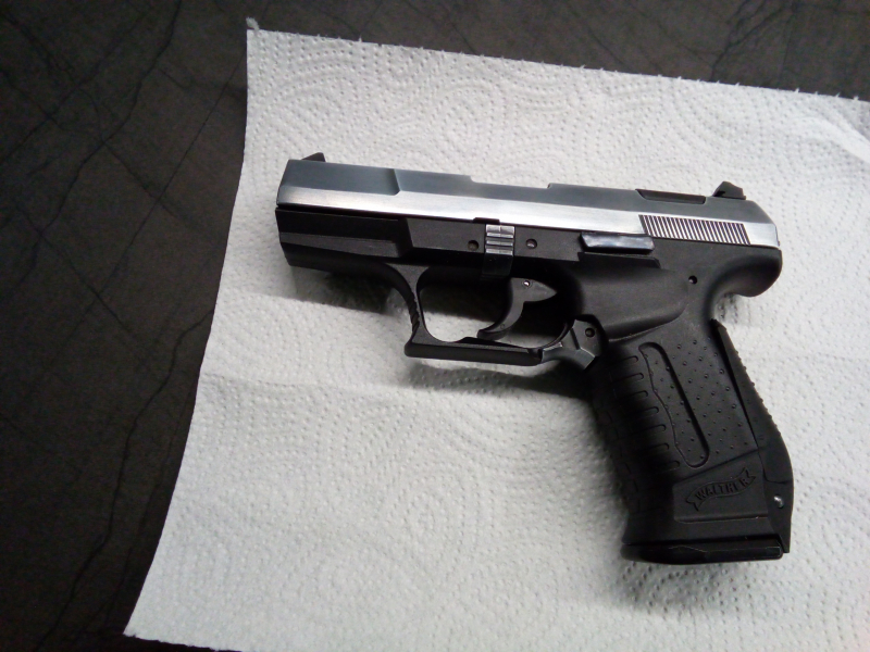 Hallo biete eine Automatic Pistole Modell P99.mit der alten PTB NUMMER 637.DER SCHLITTEN WURDE AUF POLLIERT.KALIBER9MM.KNALL.FUNKTION IST GEGEBEN.sie ist gebraucht