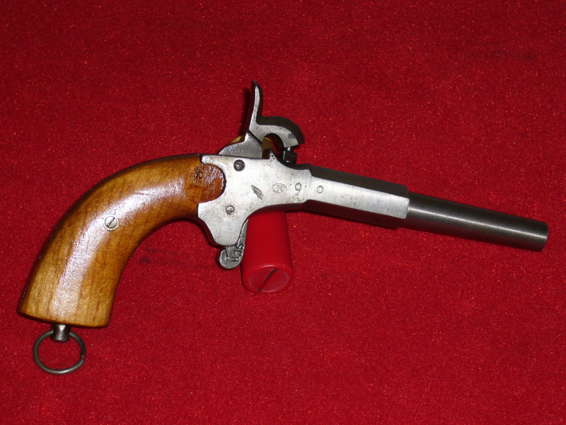 Sie kaufen hier eine orig. Perkussionspistole im Kal. 8mm, vermutlich Suhl. Gesamtlänge 19,5 cm, Lauflänge/Glatt 10 cm.