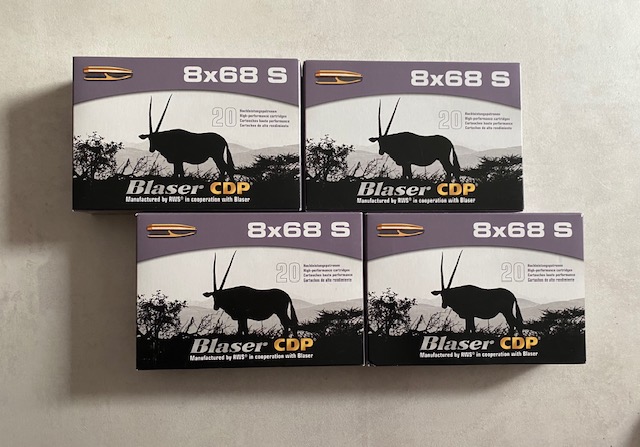 Guten Tag, ich verkaufe 4 Schachteln (80 Schuss) Blaser CDP Munition im Kal. 8 x 68 s. Die 4 Verpackungen sind versiegelt und wurden nie geöffnet. Vor ca. 2 Jahren gekauft. Hinzu kommt eine angebrochene Schachtel etwas ältere RWS Munition im gleichen Kaliber. In dieser Box befinden sich 14 Schuss RWS, sowie weitere 5 Patronen der Blaser CDP. Auf den Fotos erkennt man die relevanten Daten. Privatverkauf, daher keine Rücknahme o. ä. Viel Spaß beim Bieten.