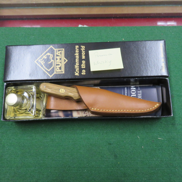 1 Originales Puma Set " Thausend Whisky Mit der Serien Nummer 42 " das Messer/Set ist neu /unbenutzt, Karton Verpackung, Garantie Zertifikat. Das Set ist Nicht mehr von Puma Lieferbar. Die Whisky Flasche ist natürlich noch im Originalzustand voll.