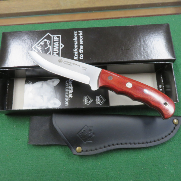 1 Original Puma IP Messer " Schweissfährte " das Messer ist original verpackt neu und unbenutzt, mit Garantie zertifikat und schwarzer Sattellederscheide.
