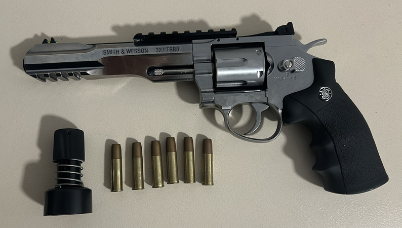 verkaufe meinen CO2 Revolver Smith & Wesson 327 TRR8 in Nickel-Optik (oder Stahl-Optik wie ich immer mal wieder lese)