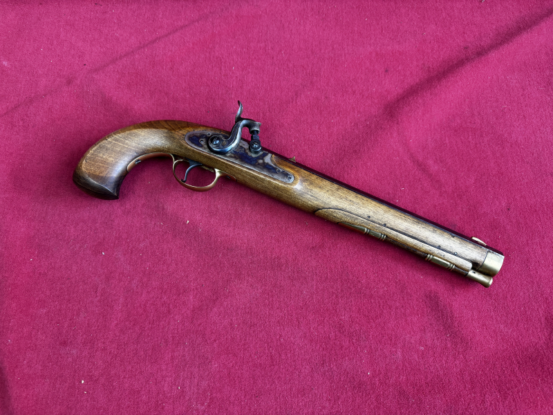 Es handelt sich hier um eine Pedersoli, sehr seltene Ausführung, buntgehärteter Lauf u. Schloss. Lauf hat Züge und Felder. So wie die Waffe aussieht ist sie ungeschossen.