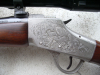 Gravuren auf beiden Seiten der Basküle und dem Öffnungshebel, links, Gebirgsscene mit Muffelwild, rechts treibender Bock im Wald mit Weinlaubumrandung,