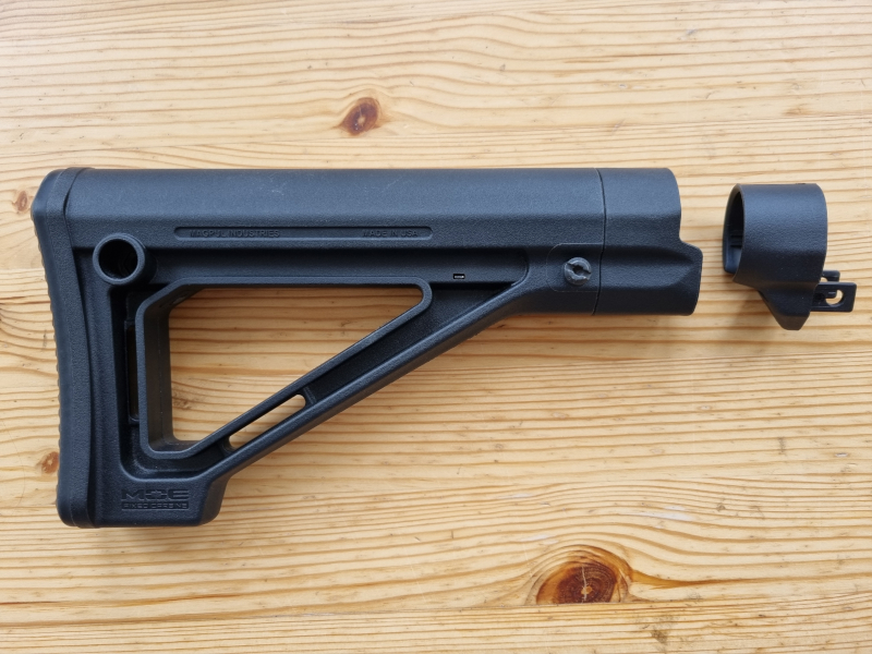 Es handelt sich um einen MAGPUL MOE-Fixed Festschaft in Schwarz. Der Schaft wurde von mir fälschlicherweise gekauft, daher wurde er praktisch nicht verwendet.