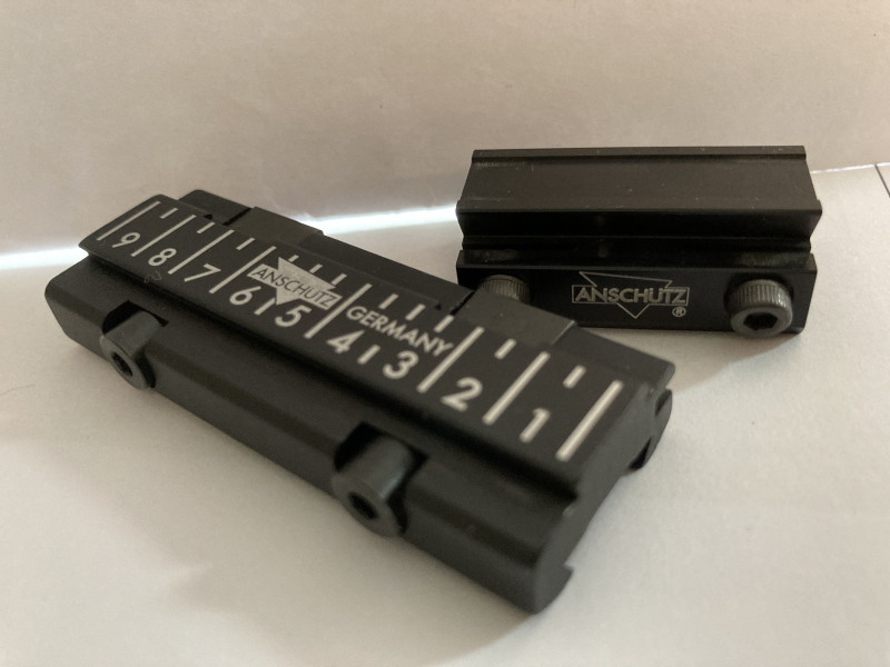 Anschütz Visierlinienerhöhung Match 54 Modell 6713/2.für frühere KK-Modelle 1407-1813 oder Match 54 mit aufgeschraubtem Laufprisma. Hinten 8mm Vorne 11 bis 13 mm je nach Prismenfräsung. Passend für alle KK-Modelle bis Baujahr 1988. Bestellnummer 009161.