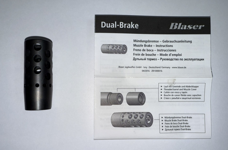 Die aufschraubbare Blaser DUAL BRAKE-Mündungsbremse Typ B vermindert Rückstoß, Mündungsfeuer und Hochschlagen der Waffe durch Umlenkung der Pulvergase erheblich und sorgt so für sicheres Trefferbild. Der empfundene Rückstoß wird um ca. 35 bis 50 % vermindert.