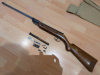 Vollständiger Teilesatz eines historischen Luftgewehrs, vermutlich aus Ende der 1940er/Anfang der 1950er Jahre, als gezogene Waffen in Deutschland verboten waren. Keinerlei Beschriftung, nur Seriennummer unter dem Lauf. Kaliber 4,5 mm Glattlauf. Die Waffe ähnelt den zeitgenössischen Modellen der Firma Wagria aus Ascheberg in Schleswig-Holstein. Das Gewehr funktionierte, guter Druck und ausreichende Präzision. Dann habe ich es zum Reinigen zerlegt und nicht mehr zusammengesetzt bekommen. Daher jetzt als Teilesatz mit Tasche wie abgebildet zu verkaufen. Privatverkauf ohne Garantie oder Rücknahme. Tierfreier Nichtraucherhaushalt.