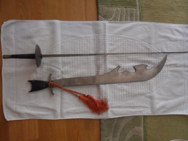 Biete einen DEKO Degen und eine polynesische DEKO Machete. Der Holzgriff der Machete hat die Form einer Maske.