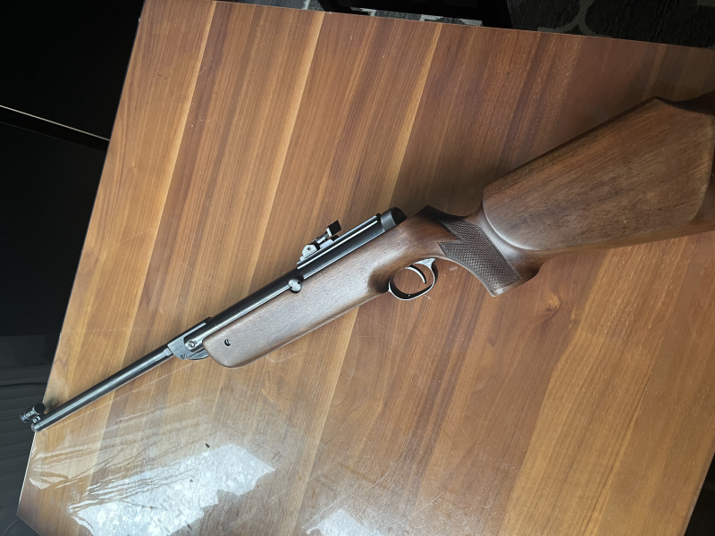 Bei dieser Auktion handelt es sich um ein Luftgewehr, Marke Diana Modell 60 in 4,5mm. Wie auf den Fotos zu erkennen gibt es leichte Gebrauchsspuren, die keinen Einfluss auf die Funktionsfähigkeit des Luftgewehrs haben. Lässt sich ohne Probleme knicken und spannen. Der Federdruck ist absolut in Ordnung. Bei Fragen gerne Kontaktieren. Leider kann es aufgrund der Größe nur als Sperrgut versandt werden.