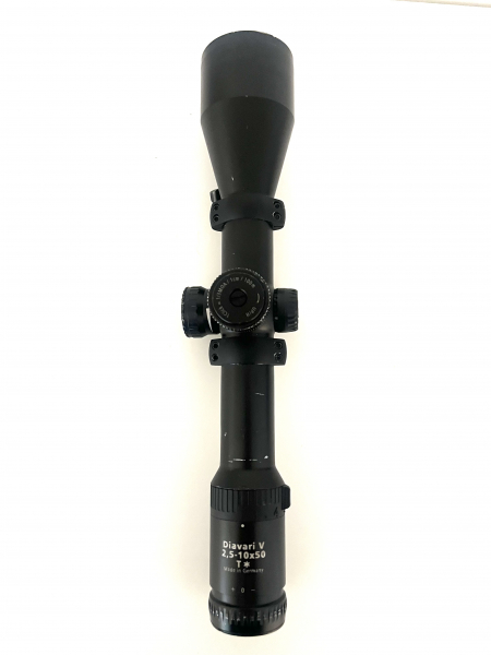 Zum Verkauf kommt ein Zeiss Diavari V 2,5-10x50 mit Leuchtpunkt und Absehenschnellverstellung. Das Zielfernrohr ist extrem kompakt. Es ist auf einer Blaser Sattelmontage montiert, die ebenfalls Gegenstand der Auktion ist und noch eine leichte Version der Blaser-Montage ist. Beides zusammen wiegt nur 699 Gramm (siehe Foto!).