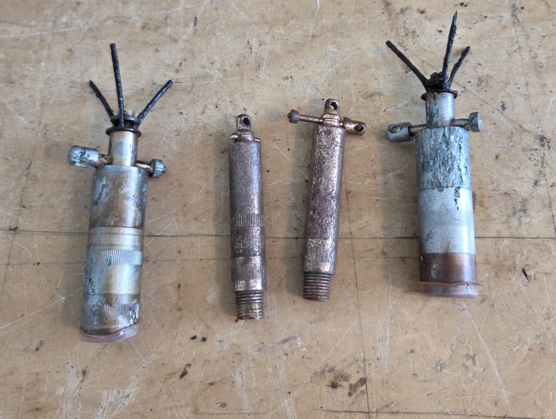 Deutsche Minen Zünder 2 Stachel Zünder für die S-Mine und 2 Zug Zünder. Frei von allen Gefahr Stoffe zustande siehe Bilder.