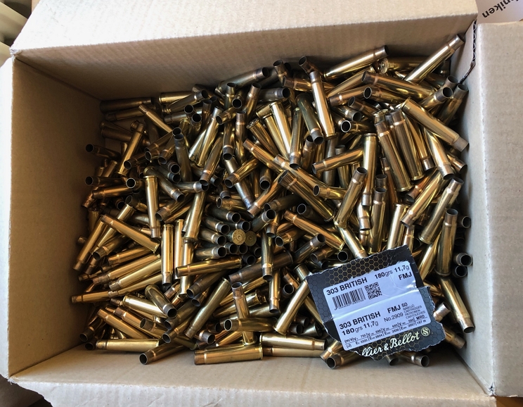 Einmal abgeschossene Hülsen .303 British für Enfield Gewehre oder den Jungle Carbine.