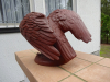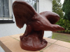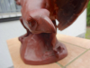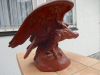 Ausdrucksstarker Adler aus roter Böttger/Meissen(?) Keramik. Querlänge riesige 40 cm. Feinst ausgearbeitet im typischen Stil des 3.Reichs. Absoluter Topzustand, ohne jegliche Beschädigung - Punkte an den Krallen auf Foto 3 sind nur Staub! Der Durchmesser des Sockels beträgt 18 cm, das Gewicht insgesamt über 3 kg. Modellnummer unter dem Sockel. Fertigungszahl müßte "14" sein, also recht seltenes Stück. Privatverkauf.