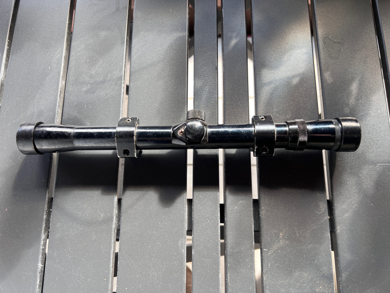 Zielfernrohr Lisenfeld Junior 4x20 mit vergütete Optk. Sehr schöner Zustand mit Montageoberteilen (nicht geklebt). Nicht geprüft. Verstellung funktioniert. Absehn 1.