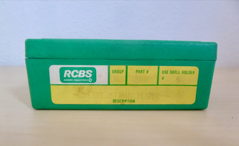 Biete RCBS Matrizensatz für Kaliber .357 Mag / .38 Special mit Taper-Crimp-Matrize. Mit Gebrauchsspuren, aber in gutem Zustand!