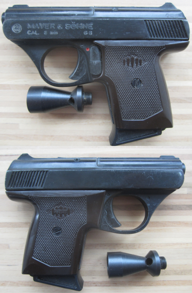 Bei dieser Pistole handelt es sich um eine HS Mod.5 mit der selten „Meyer & Söhne G8“ Beschriftung. Die Pistole im Kaliber 8mmK ist in gutem gebrauchtem Zustand. An den Metallteilen sind normale Gebrauchsspuren sichtbar. Die Pistole trägt die PTB Nr.100 und wurde 1981 beschossen. Sie ist noch für die alte Gasdruck starke 8mm Munition ausgelegt. Die Waffe wird mit 15mm Abschussbecher ersteigert. Frei ab 18 Jahre. Privatverkauf von gebrauchter Ware, keine gesetzliche Gewährleistung. Versandkosten 9,5€ (innerhalb der BRD).
