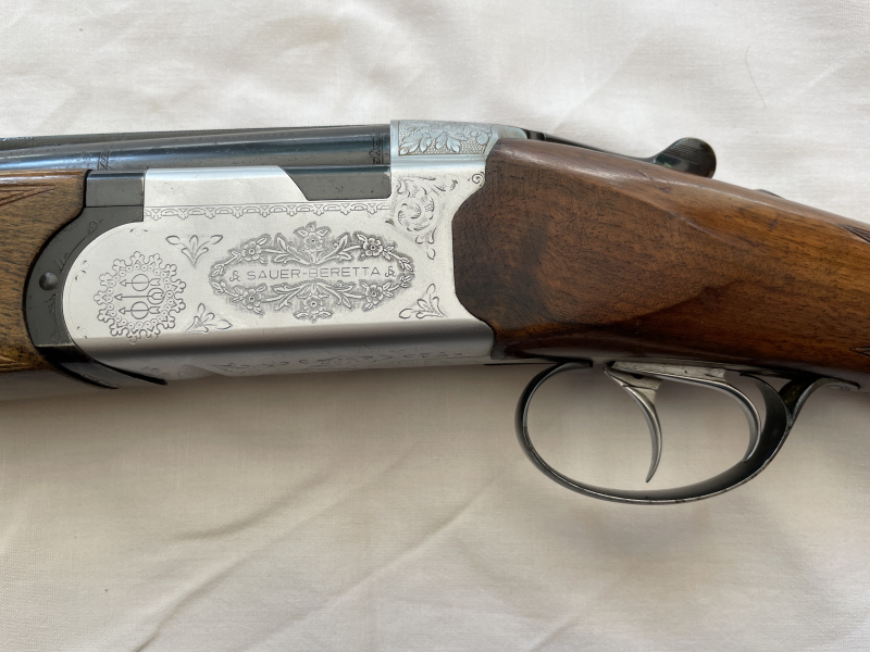 Zum Verkauf kommt eine Bockdoppelflinte Sauer Beretta Mod. S 56 E im Kaliber 12/70. Die Waffe hat Voll -und Halbchoke, Ejektor und Doppelabzug, sowie Hartgummi-Schaftkappe und Riemenbügel. Brünierung gut und Schaft mit Gebrauchsspuren. Gesamtlänge 114cm, Läufe 71cm, Schaft 37cm. Läufe innen Spiegelblank. Laufschiene 7mm mit Silber-Perl-Korn. Verkauft wird nur gegen Vorlage einer gültigen Erwerbsberechtigung (EWB) und Vorlage der NWR-ID-Nr.: P + E! Viel Spaß beim Bieten.