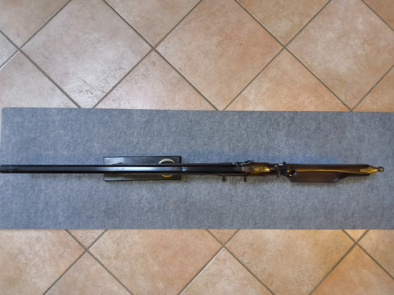 Hallo zusammen, verkaufe hier ein Vorderlader Scheibengewehr cal.45, Länge 111cm, Laufaußendurchmesser 25,7mm mit Stecher und Diopter, Lauf blank, gepflegter Zustand, siehe Bilder.