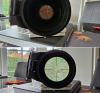 Im oberen linken Bereich der Linse befinden sich ein paar kleine schwarze Punkte, jedoch nicht innerhab des Fadenkreuzes. Diese lassen sich leider nicht fotografieren, sind aber bei der Zielerfassung nicht störend. Ein Wabenfilter ist auch mit dabei. Ebenso die beiden Vortex Defender Clip Caps.