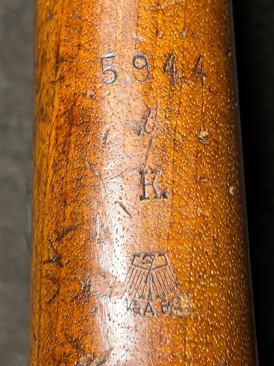 Keine Export- oder Importstempel und auch kein Beutestück. Neu beschossen 1975 durch die Frankonia Waffen Würzburg.