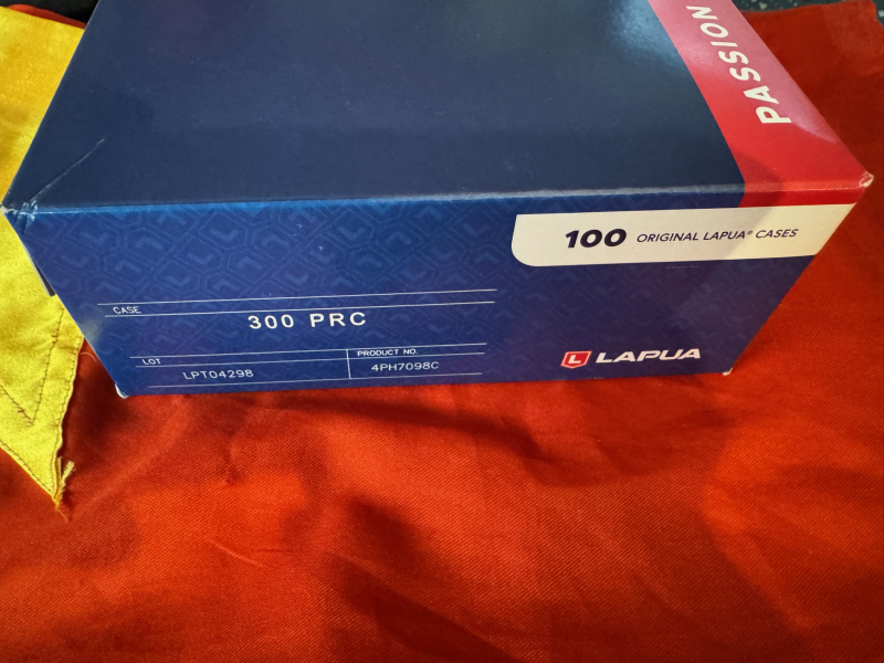 zum Erwerb stehen 100 Hülsen im Kaliber 300PRC der Firma LAPUA.