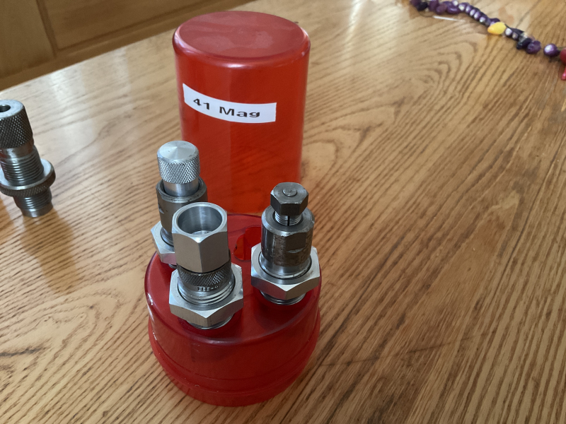 Verkaufe einen Matritzensatz von Lee in .41Mag, 3 Teilig. Dazu eine Tapercrimpmatritze in .41Mag von Lyman inkl. Shellholder.