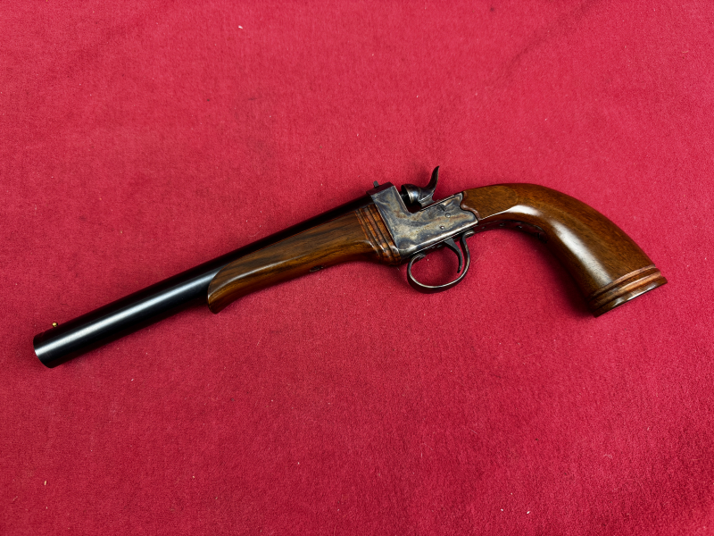 Es handelt sich hier um eine Pedersoli Saloon Vorderlader Pistole im cal.36, buntgehärteter Systemkasten, Abzugsbügel, Hahn, erstklassiger Zustand wie neu.
