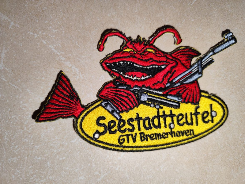 Der Patch zeigt das Logo der „Seestadtteufel“ GTV Bremerhaven, einer traditionsreichen Einheit bzw. Gruppierung mit Bezug zur norddeutschen Hafen- und Marinegeschichte. Der Name „Seestadtteufel“ steht sinnbildlich für Stärke, Teamgeist und die Verbundenheit zur Seestadt Bremerhaven – einer bedeutenden deutschen Hafenstadt mit maritimem Erbe.